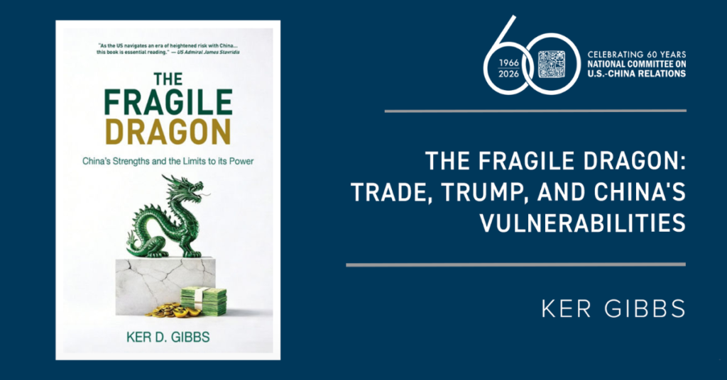 In this conversation, National Committee President Steve Orlins interviews Ker Gibbs, former president of the American Chamber of Commerce in Shanghai during the Obama, first Trump, and Biden administrations, about his new book, The Fragile Dragon: Trade, Trump, and China’s Vulnerabilities. Drawing on unparalleled access to leaders on both sides of the Pacific, Gibbs examines why U.S.-China tensions have reached a breaking point and what it means for global stability. He also offers practical guidance for businesses navigating the narrow corridor between what China wants and what the United States will allow — and how to structure for resilience as the relationship grows increasingly fragile.